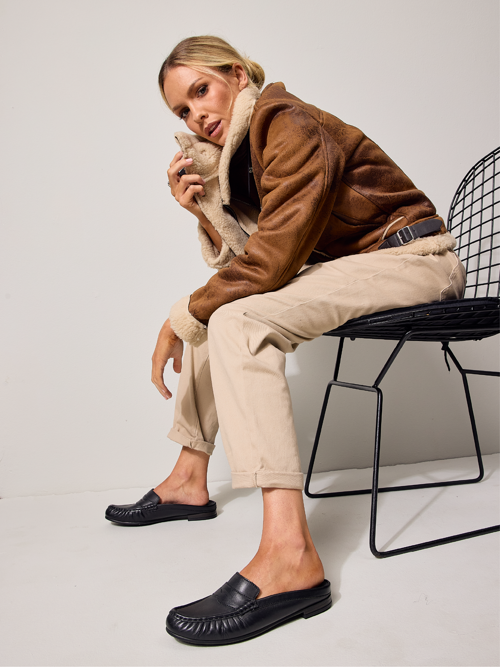 Goree : Ladies Leather Wool-Lined Ankle Boot in Black