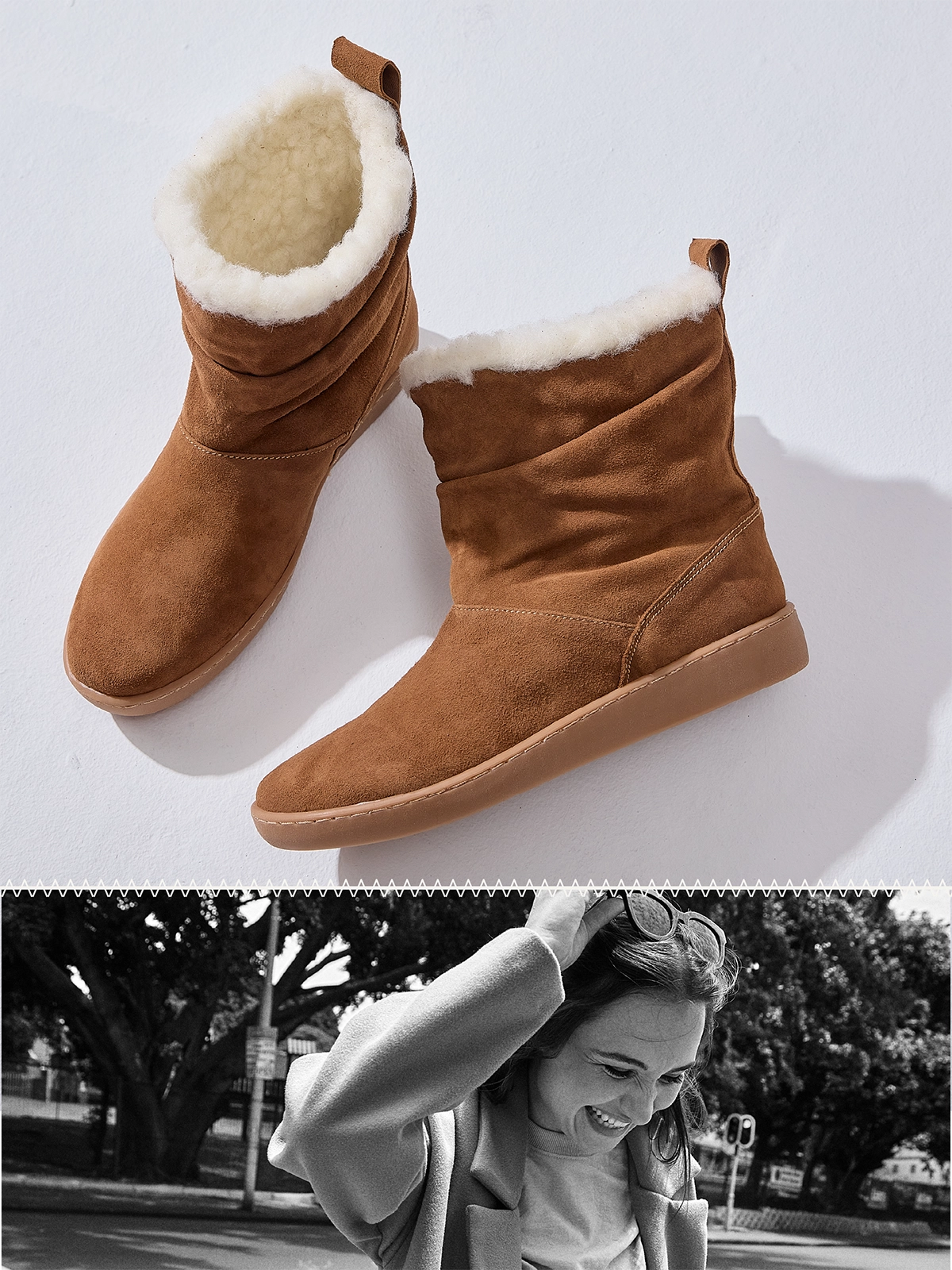 Goree : Ladies Leather Wool-Lined Ankle Boot in Mantega