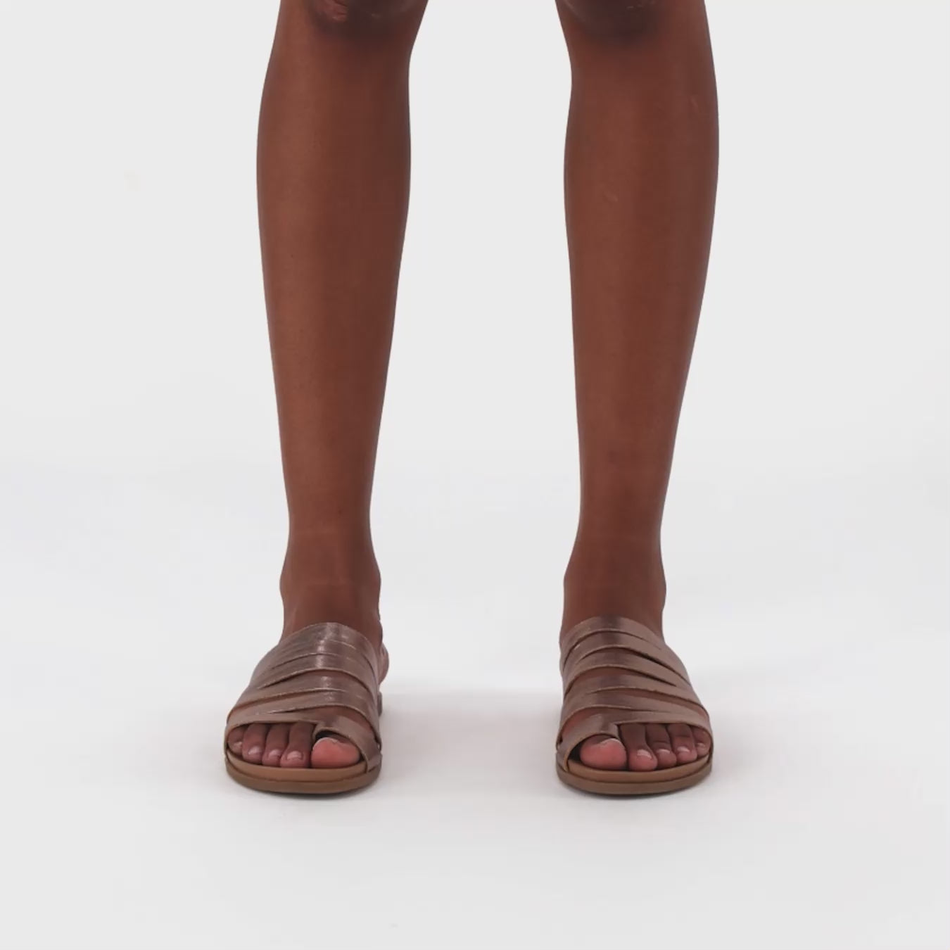 Abuye : Ladies Leather Sandal in Pink Metallic