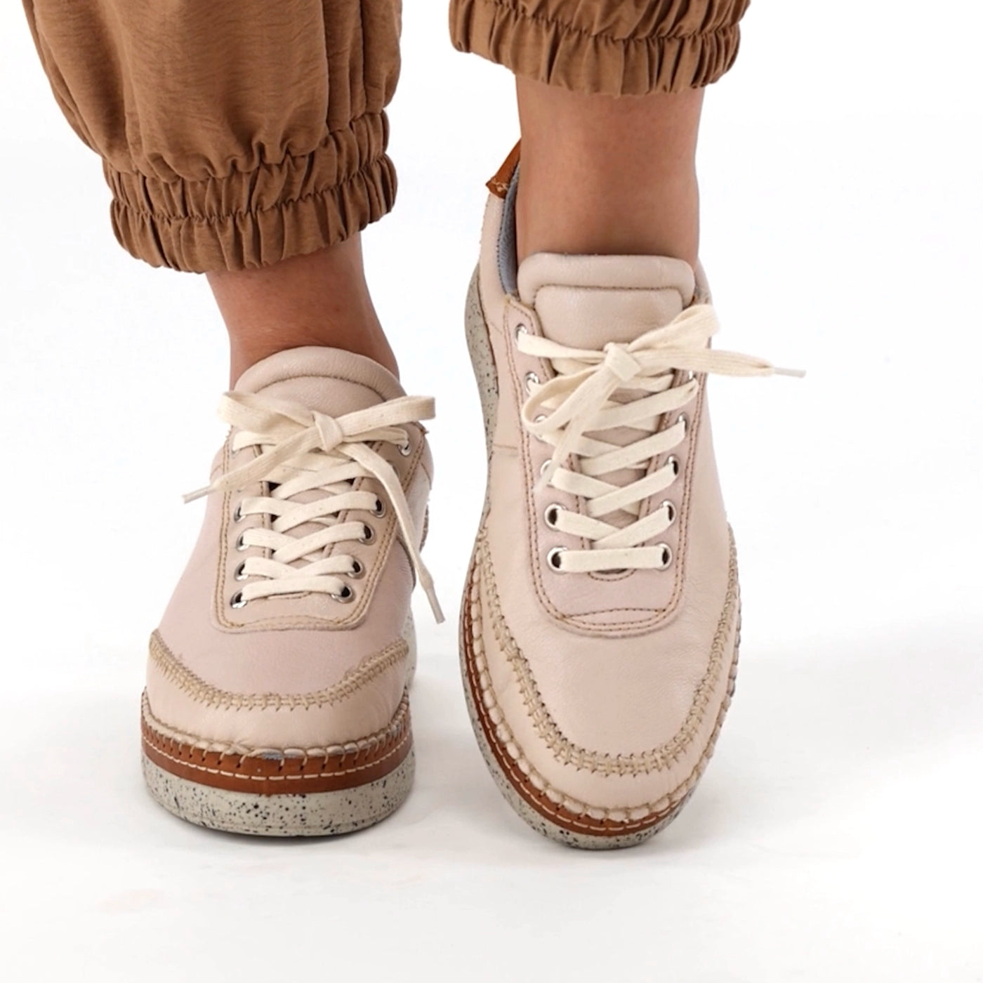 Amara : Ladies Leather Espadrille Sneaker in Oak & Walnut