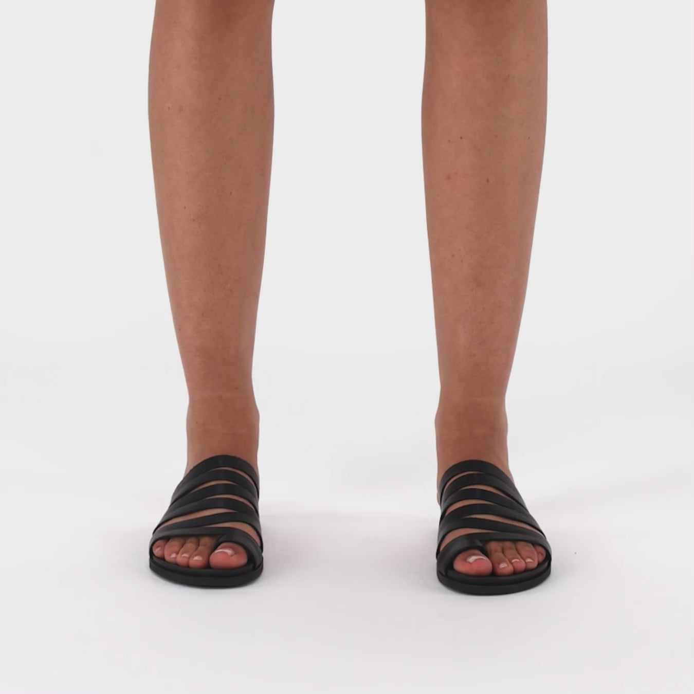Abuye : Ladies Leather Sandal in Black Relaxa