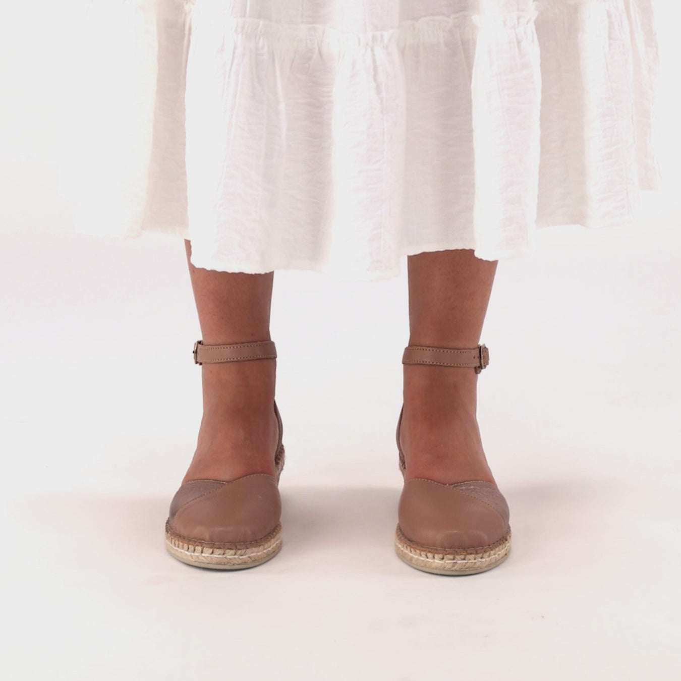 Mirembe : Ladies Leather Wedge Espadrille in Timber & Sabbia