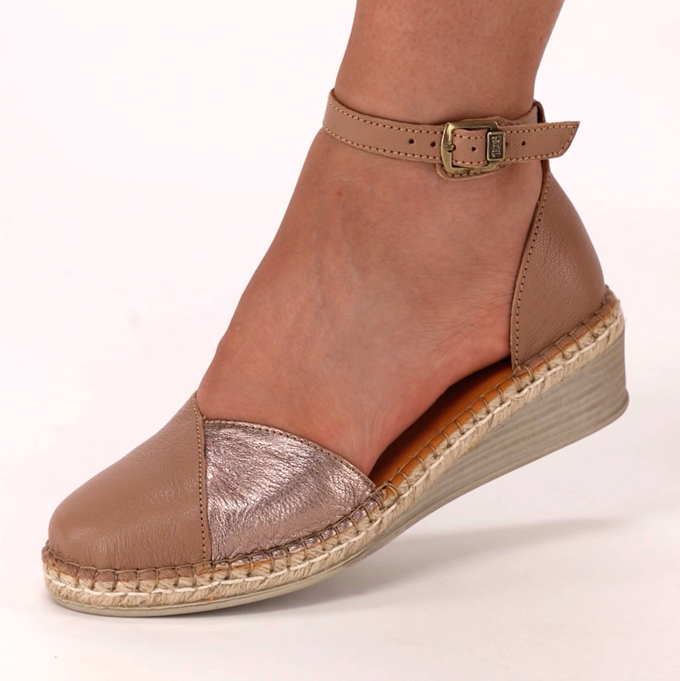 Inkantolo : Ladies Leather Wedge Espadrille in Sabbia
