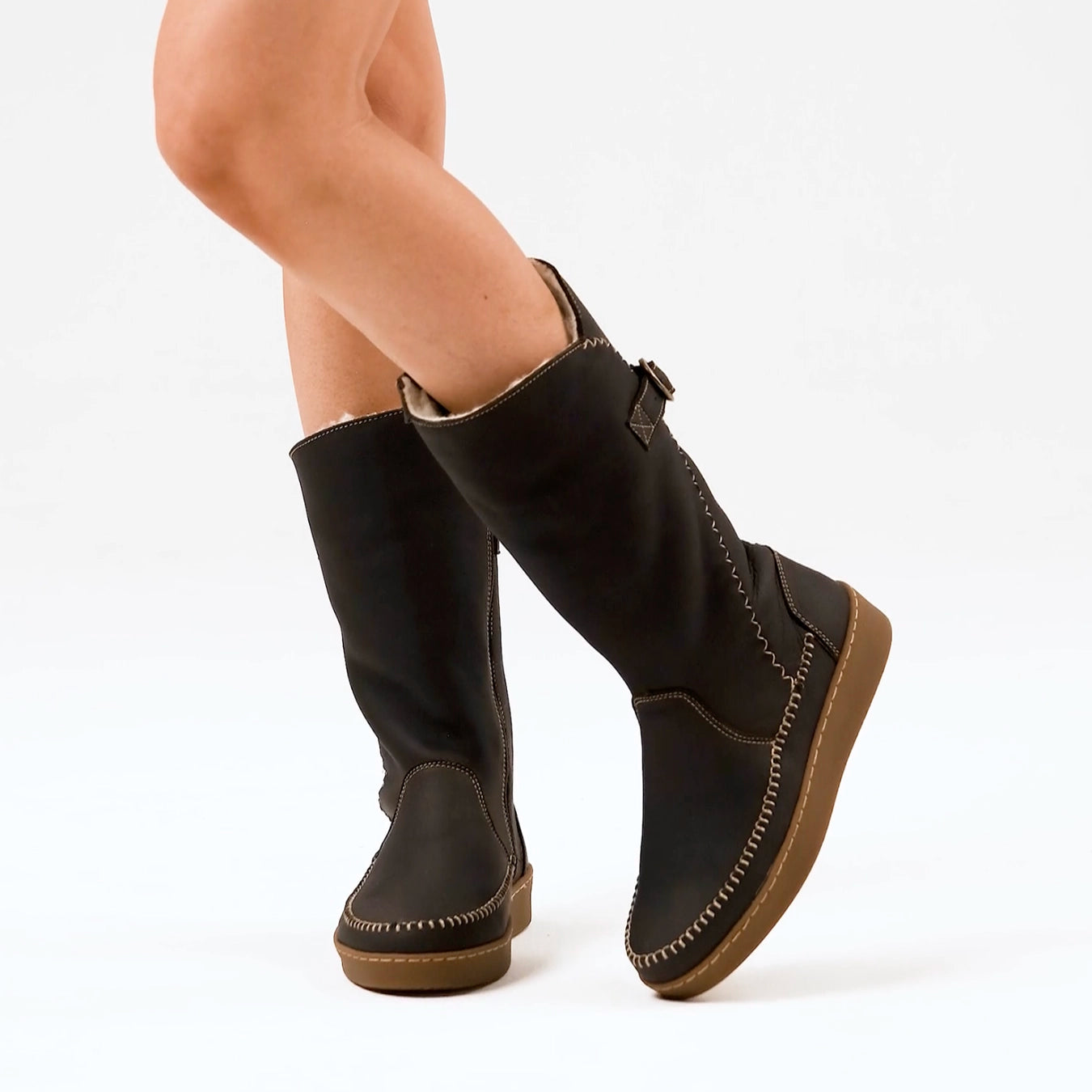 Ruaha : Ladies Leather Wool-Lined Boot in Black