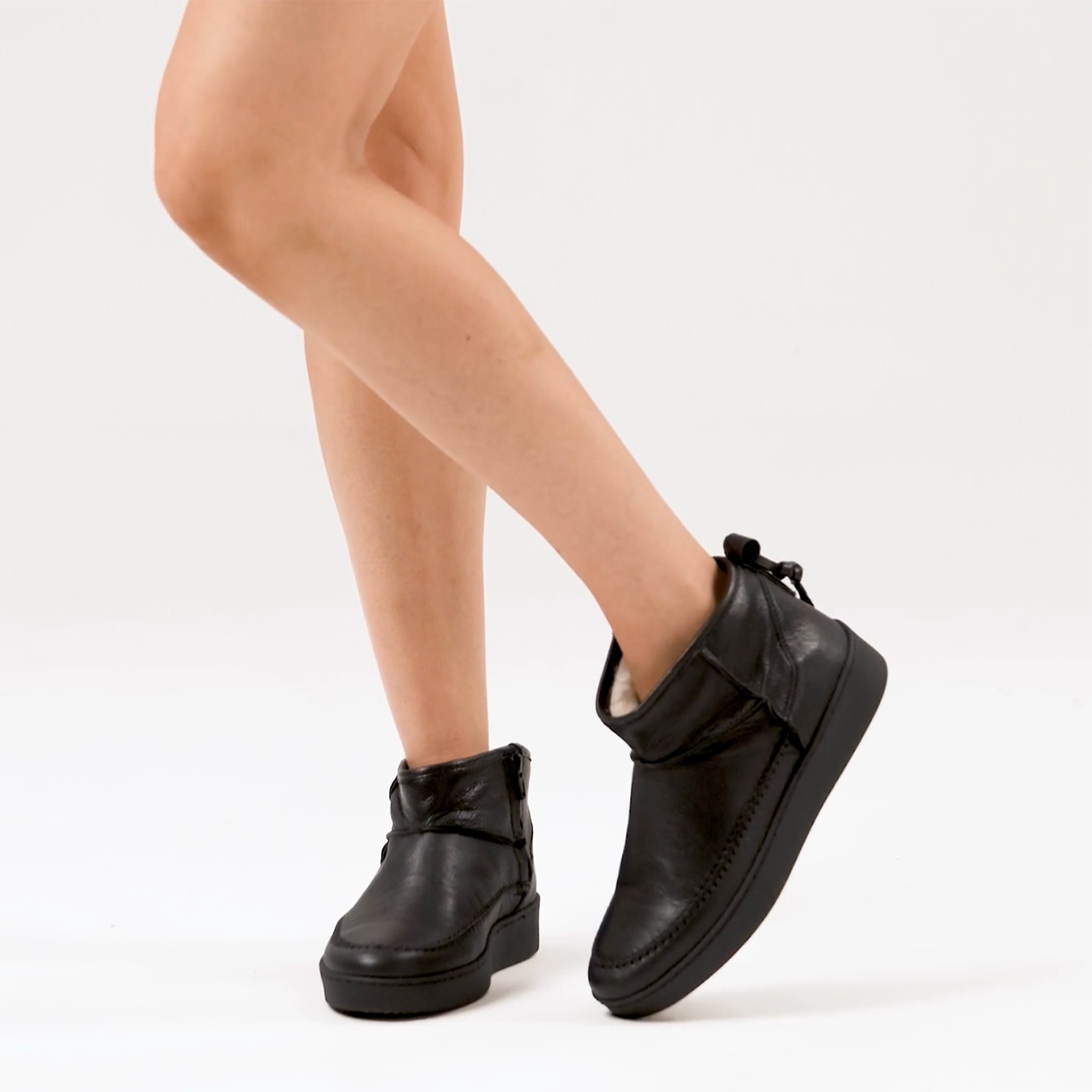 Iholide : Ladies 100% Wool-Lined Leather Short Boot in Black Floater