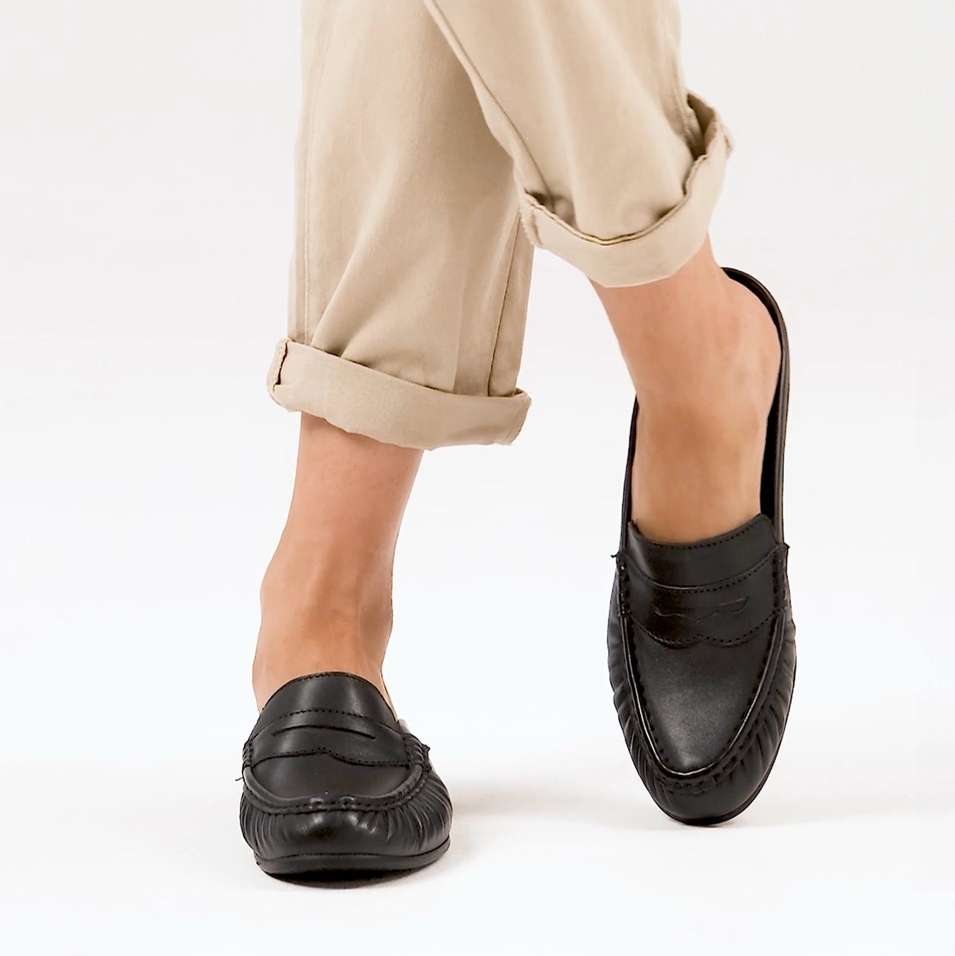 Acacia : Ladies Leather Mocc in Black