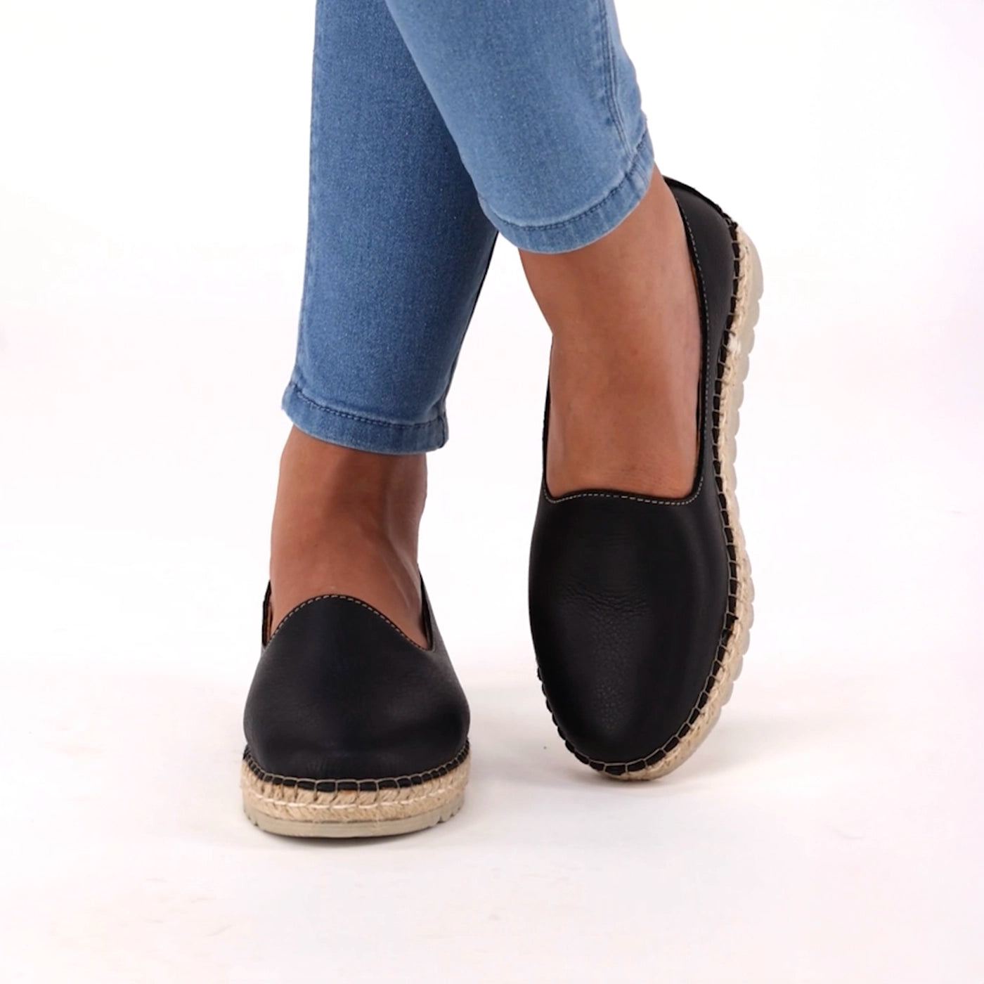 Abimbola : Ladies Leather Espadrille Shoe in Black & Tallio
