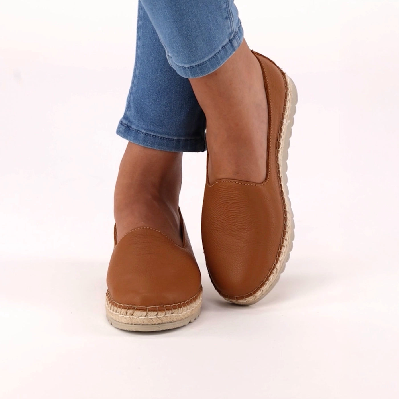 Banjul : Ladies Leather Espadrille in Oak