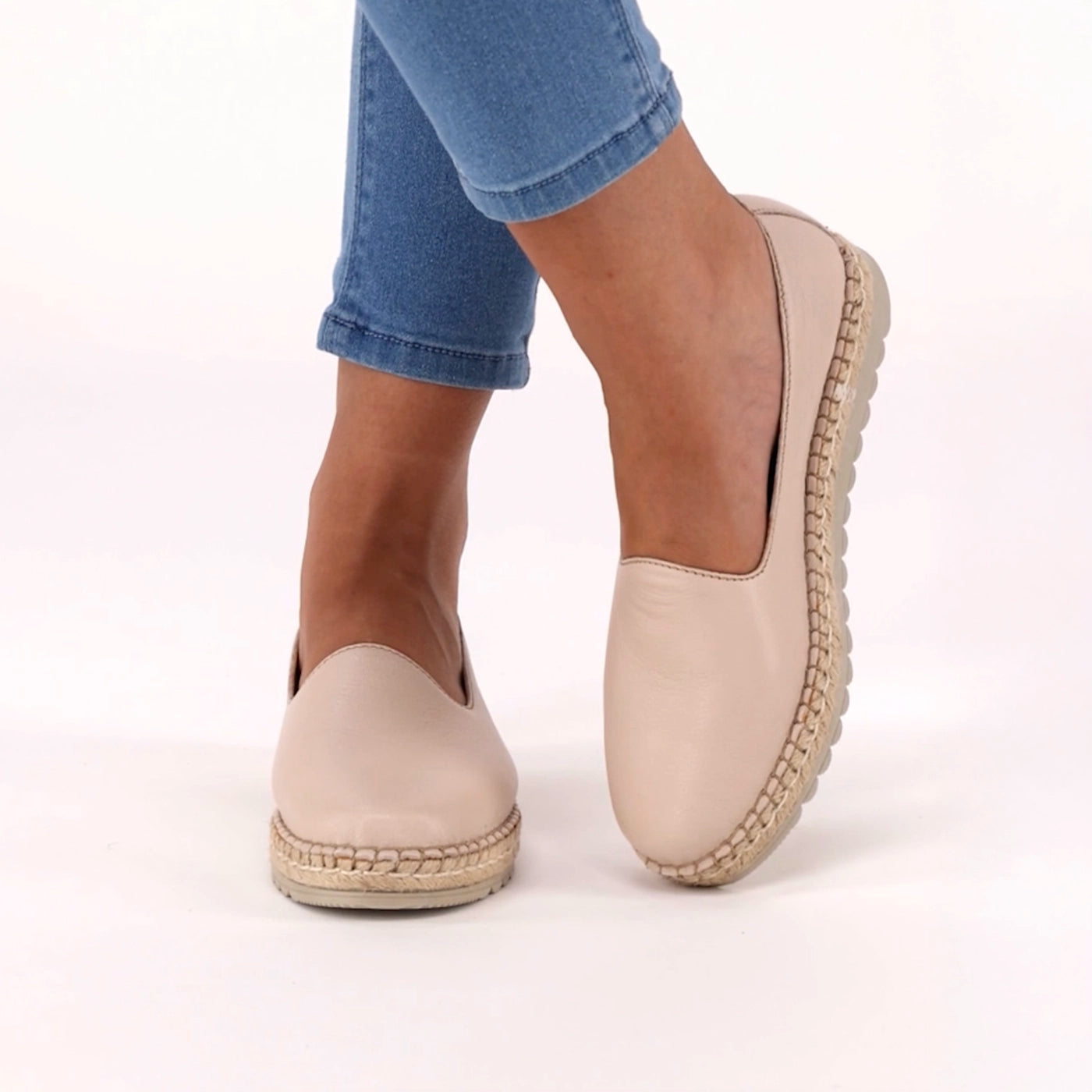 Banjul : Ladies Leather Espadrille in Cream