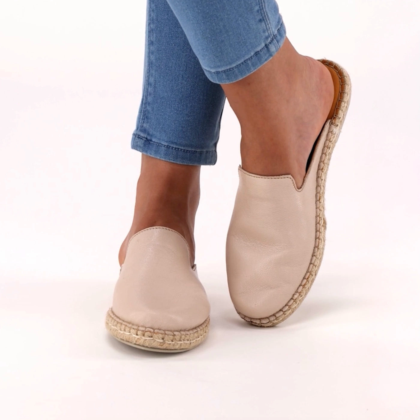 Ukubasa : Ladies Leather Slip-on Espadrille in Cream