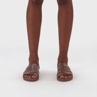 Crafted with a genuine leather upper and an intricate design, this sandal blends elegance with everyday comfort. The flat 2cm sole provides easy wear, while the locally made PU insole, moulded to gently cup the foot, offers lightweight flexibility and bounceback memory for cushioned support. Finished with a non-slip TR outsole, also locally made, this design ensures steady steps and lasting durability with every wear.