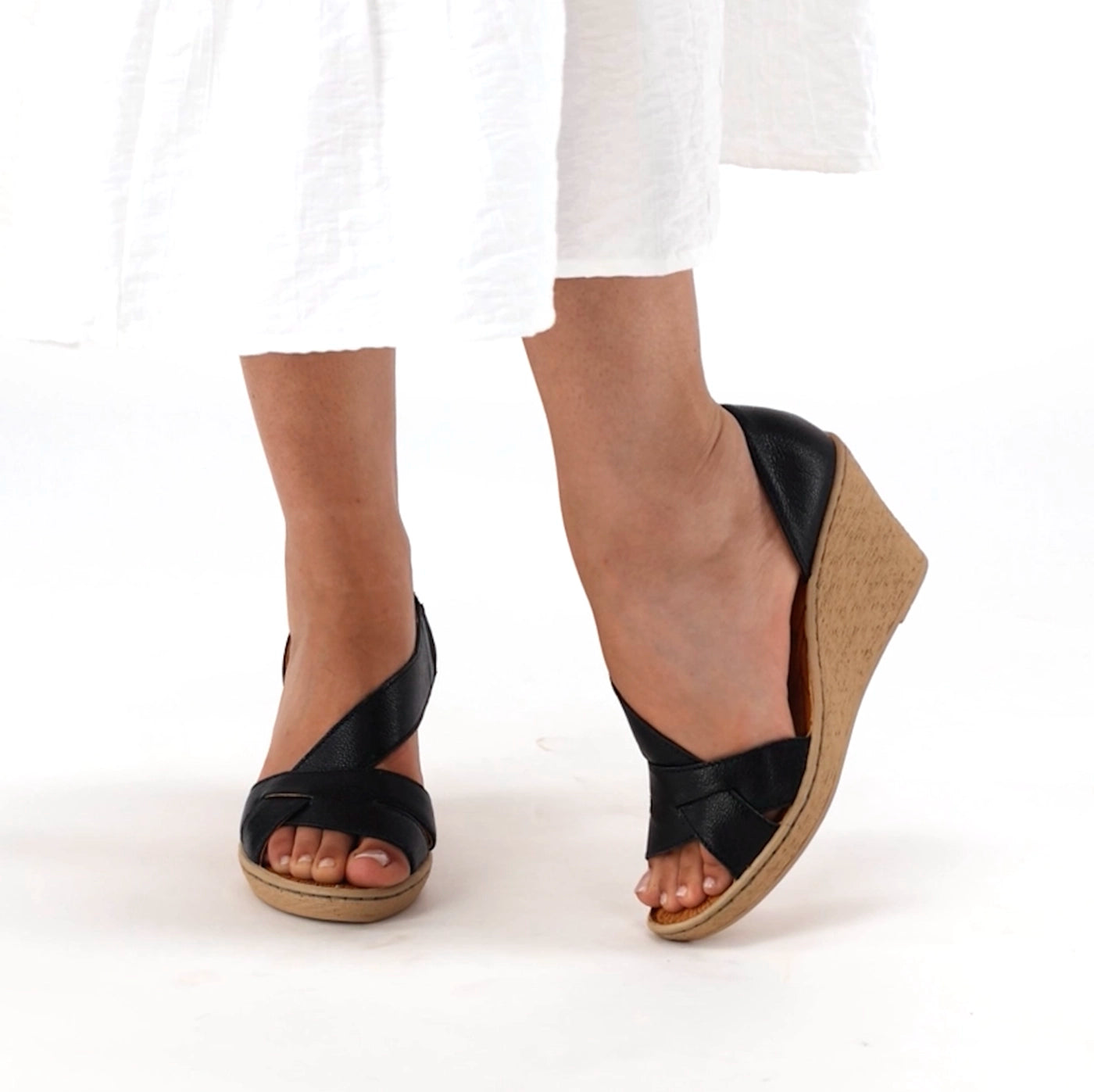 With its artfully sculpted vamp and bold 7.5cm wedge heel, this sandal stands tall in both style and comfort. Crafted from genuine leather, it balances elegance with ease, thanks to a locally made PU sole that’s lightweight, flexible, and infused with bounceback memory. An EVA footbed with memory foam cushions each step, while the breathable aircell sock and microfibre lining keep things fresh—proof that true beauty lies in thoughtful detail.