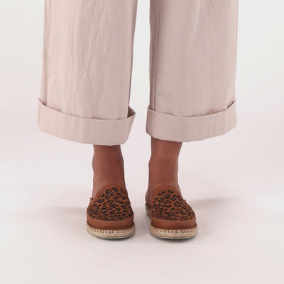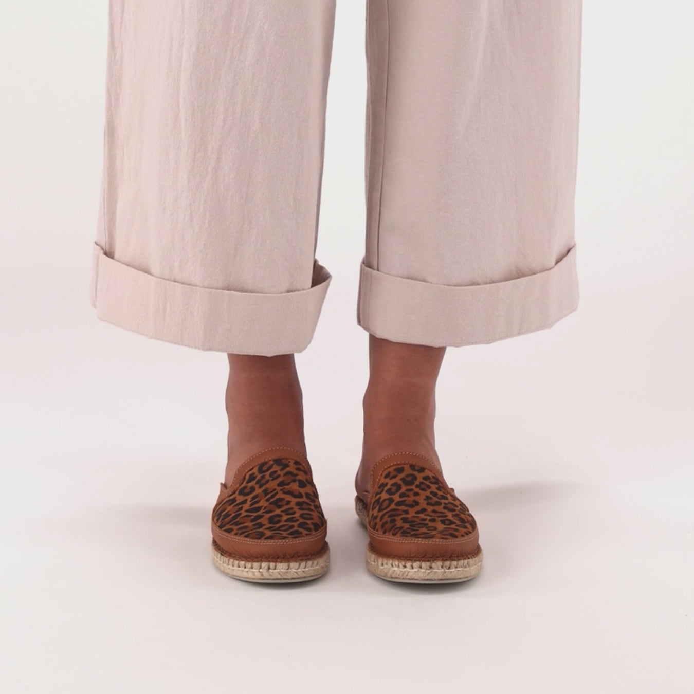 Halamuza : Ladies Leather Espadrille Mule in Oak & Spotted Lisoto
