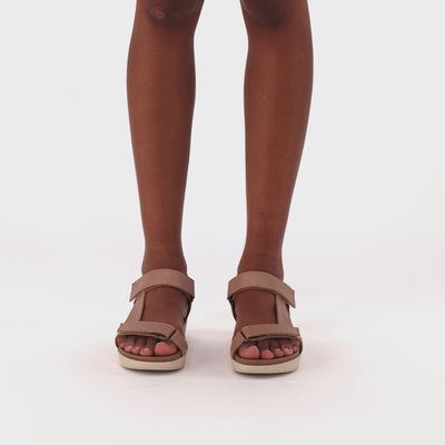 With quiet confidence and everyday elegance, the Jekete sandal steps forward in a soft leather. Crafted from genuine leather, its vamp strap features intricate stitching and a discreet adjustable Velcro closure for a secure yet graceful fit. Set atop a 4cm dual-density platform heel, this locally made PU sole combines a soft, moulded inner layer for cushioning and a slightly denser outer layer for stability and support. Finished with a breathable microfibre aircell lining and sock, this sandal is made for light journeys, heavy conversations, and everything in between.