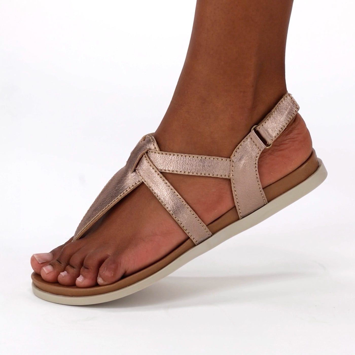 Crafted with a genuine leather upper and an strappy design, this sandal blends elegance with everyday comfort. The flat 2cm sole provides easy wear, while the locally made PU insole, moulded to gently cup the foot, offers lightweight flexibility and bounceback memory for cushioned support. Finished with a non-slip TR outsole, also locally made, this design delivers reliable stability and long-lasting durability with each step.