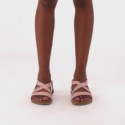 A modern twist on timeless style, this strappy leather sandal offers effortless elegance and all-day wearability. The soft leather upper features crossover straps with an adjustable back strap for a secure, personalised fit. The locally made PU footbed is moulded to gently cradle the foot, while the lightweight TR sole provides lasting cushioning—perfect for everyday comfort with a chic, versatile edge.