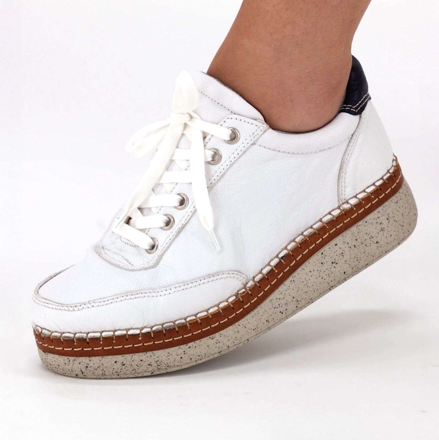 Kwazondi : Ladies Leather Platform Sneaker in White & Marine Cayak