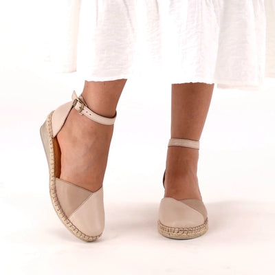 Mirembe : Ladies Leather Wedge Espadrille in Cream & Mantega
