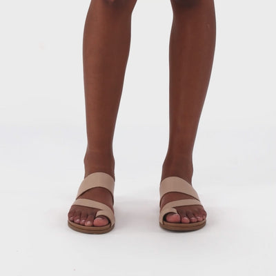 Effortless and easy to wear, this slip-on toe thong sandal features a genuine leather upper with a crossover vamp strap for added style and support. The flat 2cm sole provides relaxed comfort, while the locally made PU insole is moulded to cup the foot with bounceback memory for soft, responsive cushioning. Finished with a non-slip TR outsole that's both lightweight and flexible, this sandal is your go-to for warm days and carefree steps.
