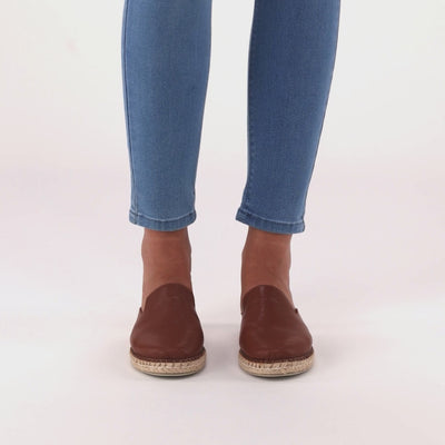 Effortlessly stylish and easy to slip on, this versatile espadrille mule features a genuine leather upper with detailed hand lacing and classic imported woven rope trim for artisanal flair. The locally made TR sole is lightweight, flexible, and non-slip—perfect for all-day movement. A cushioned EVA footbed with memory foam properties cradles the foot, while the leather sock and microfibre aircell lining ensure breathable comfort with every step. Ideal for relaxed yet refined everyday wear.
