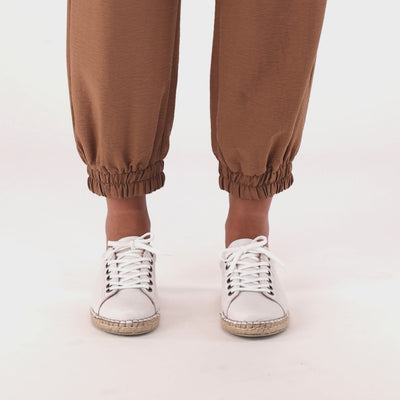 Yebo : Ladies Leather Espadrille Sneaker in White Cayak